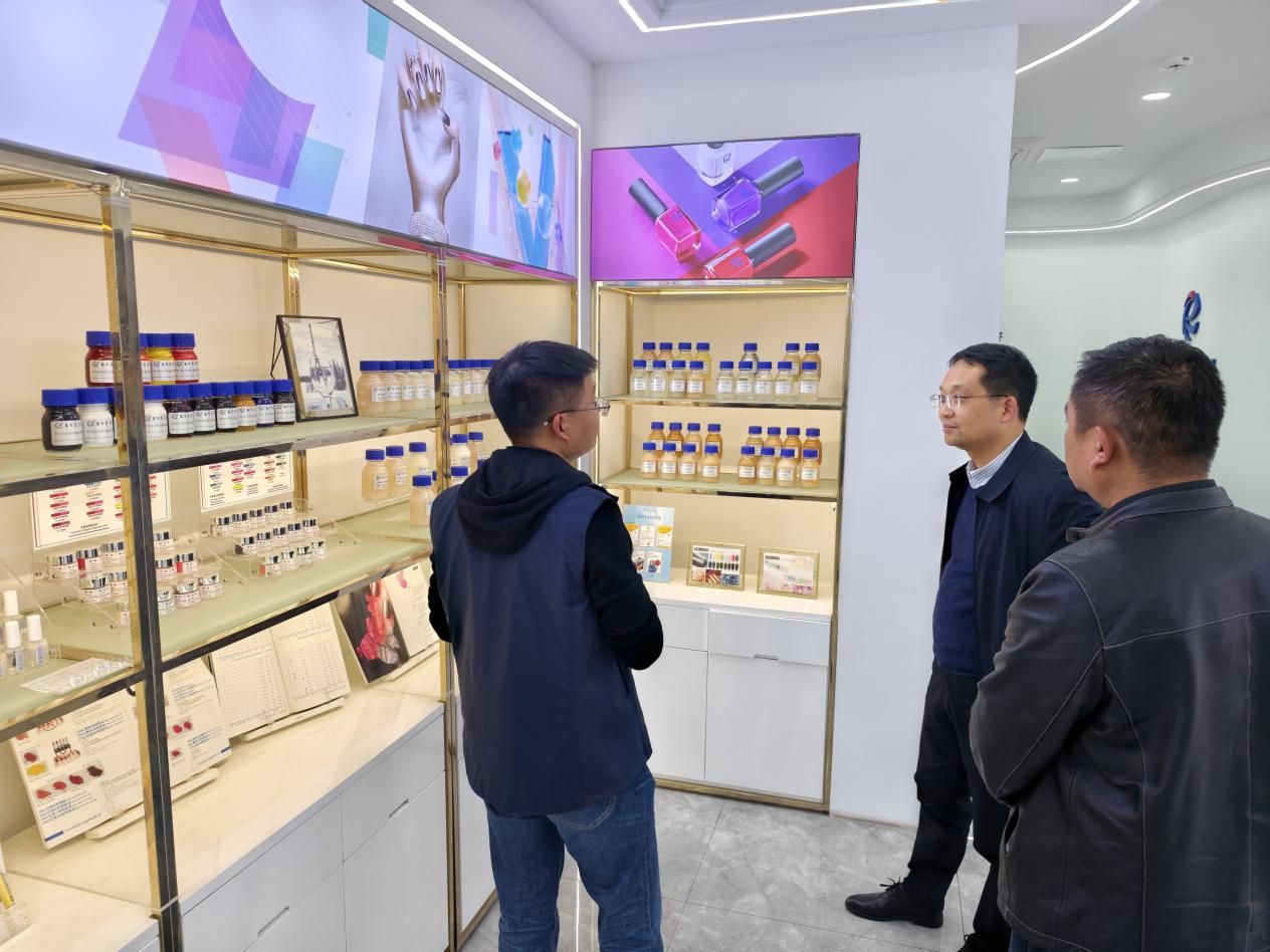 下午,调研组一行赴浙江科维思科技有限公司现场考察,参观企业甲油生产车间、化妆品包材生产车间,详细了解企业在原料创新、配方工艺、智能制造与质量控制等方面的最新成果,并就共建实习实训基地、共编教材、共育师资等合作事项达成初步意向。